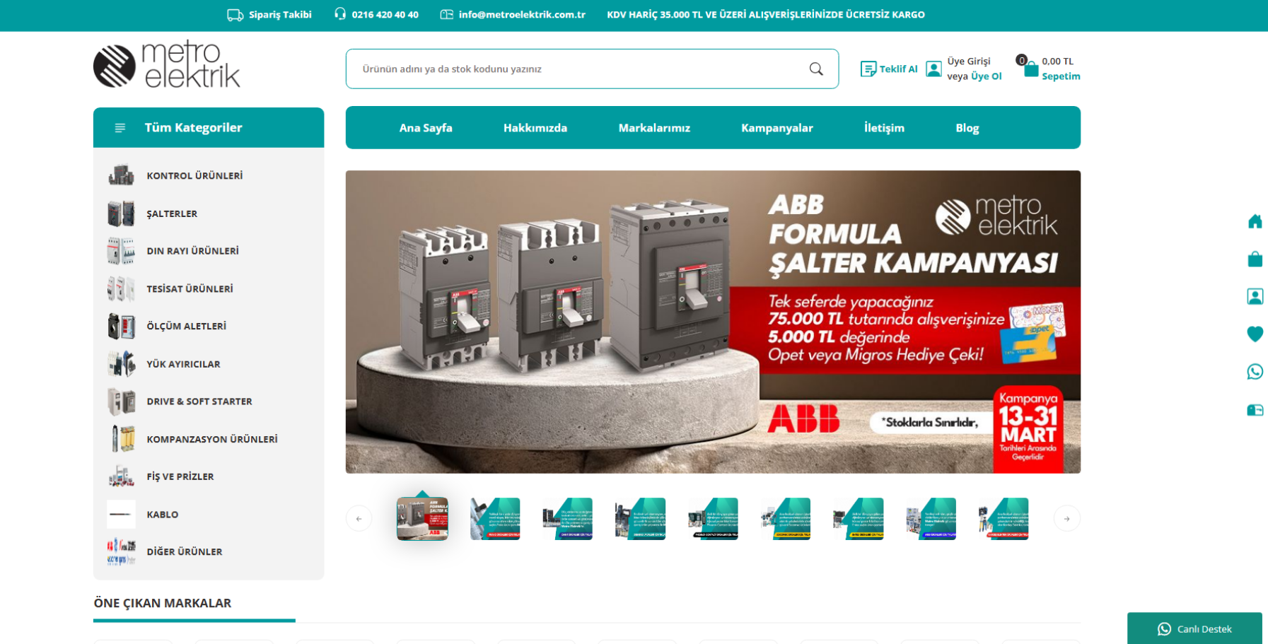 Metro Elektrik, 1993 yılında İstanbul’da kurulmuştur. Kurulduğu tarihten bu yana sektörde Alçak Gerilim ve Orta Gerilim malzemelerin satış ve pazarlamasını gerçekleştiren firmamız bu ürünlerde ana bayi olarak ya da direkt üretici firmalardan ürün tedarik ederek müşteri taleplerini karşılamaktadır.